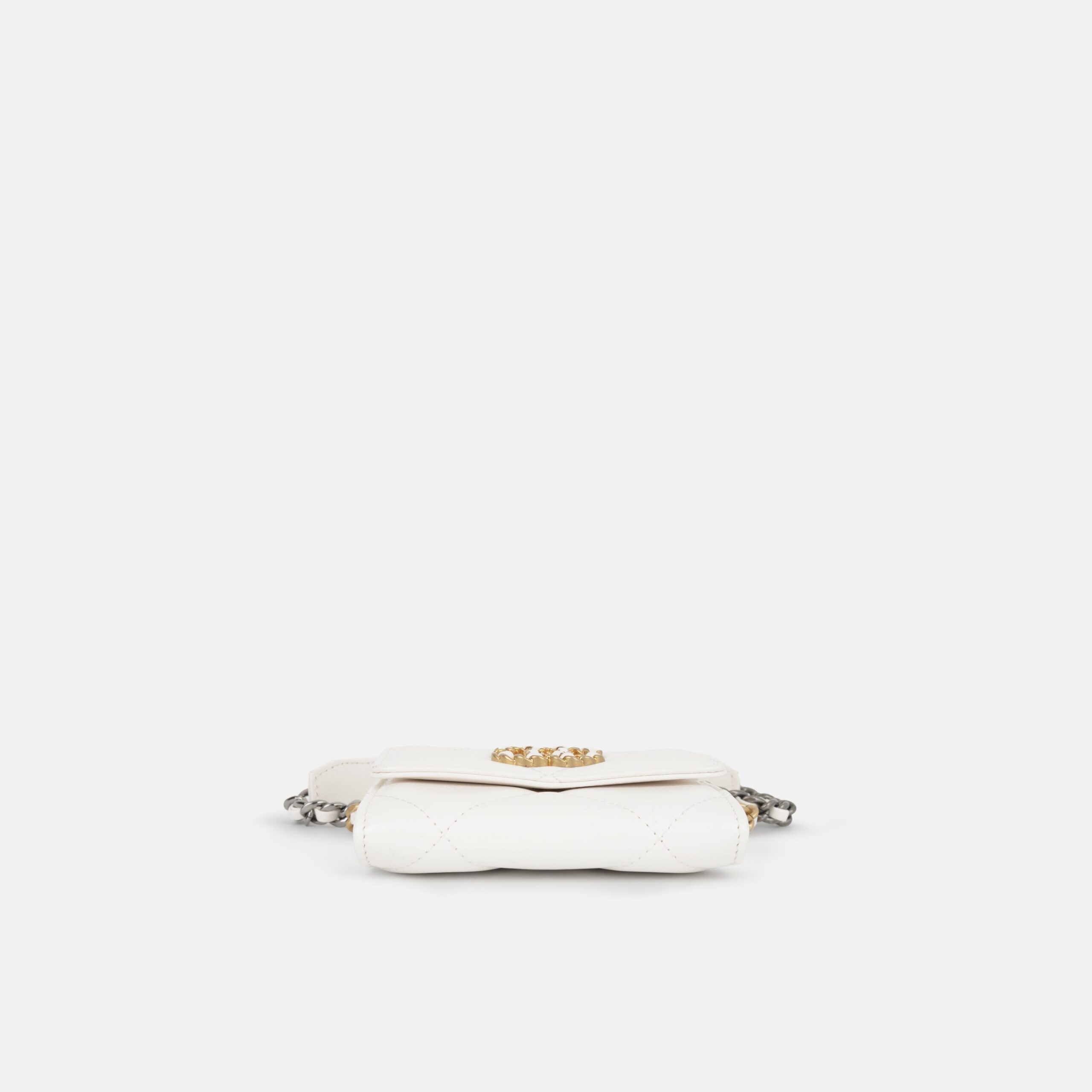 This mini card holder from Chanel is the smallest of the 19 range and the ideal luxurious accessory to add into any of your handbags. Featuring several slots for use of cards, this holder will keep everything secure and safe.