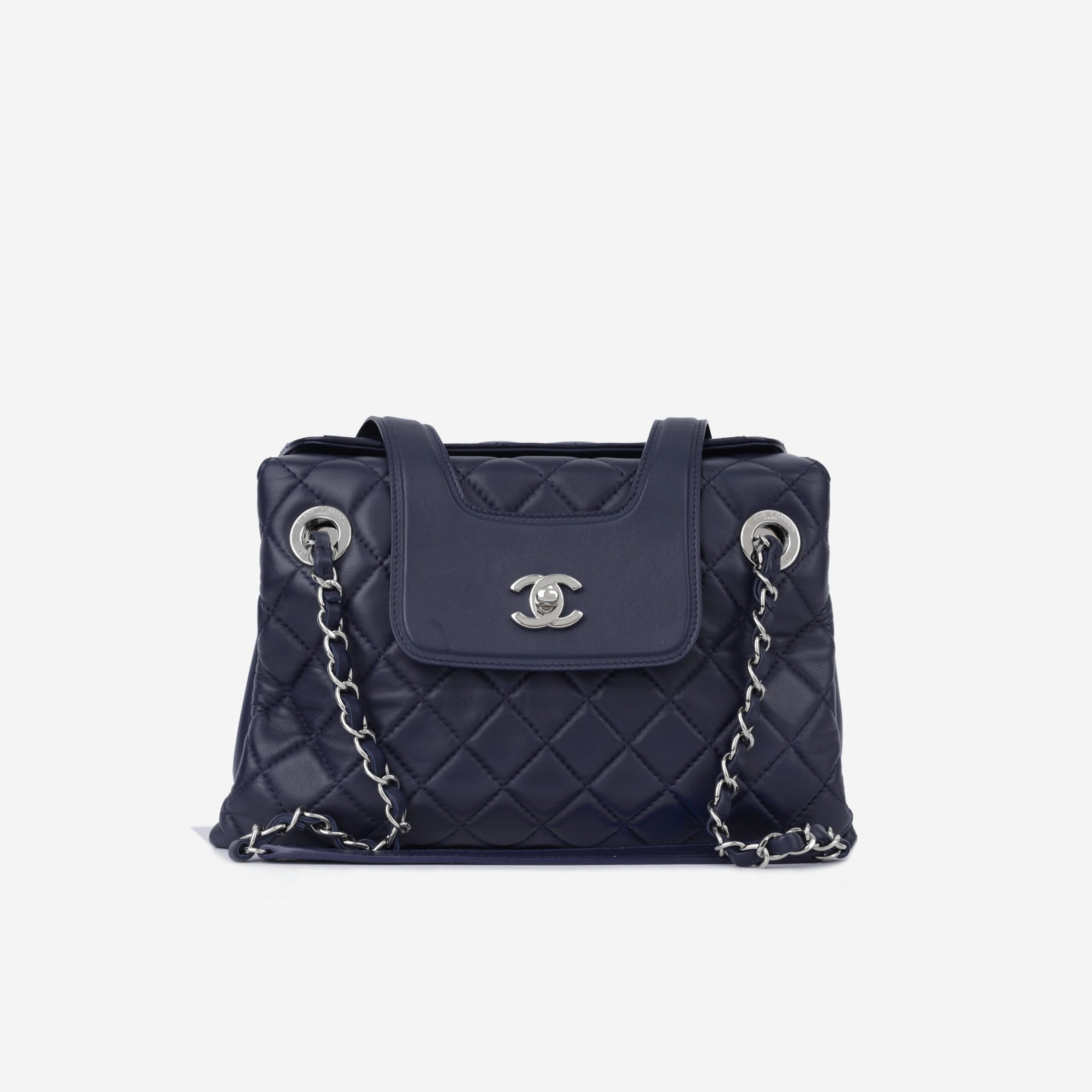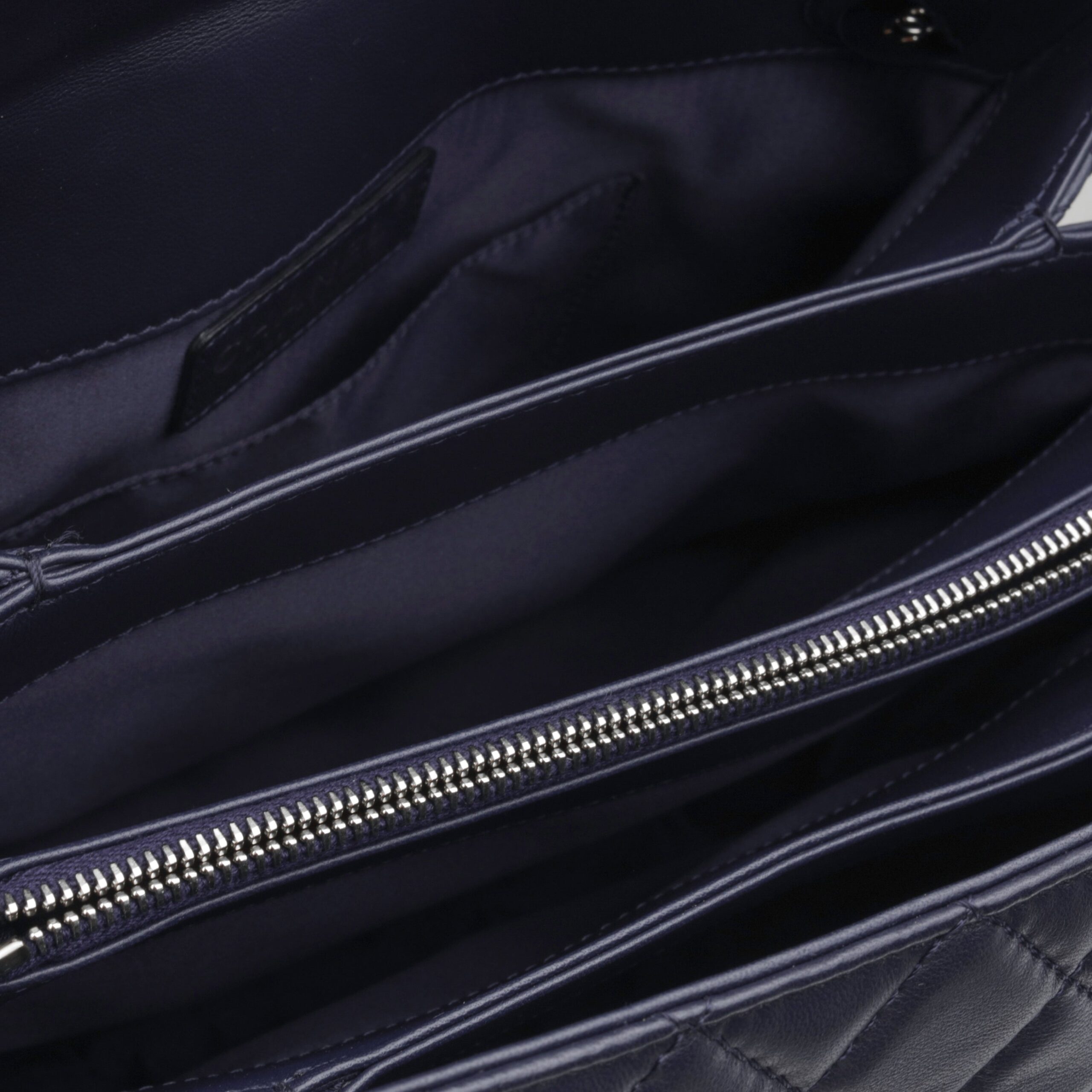 - Navy quilted lambskin leather