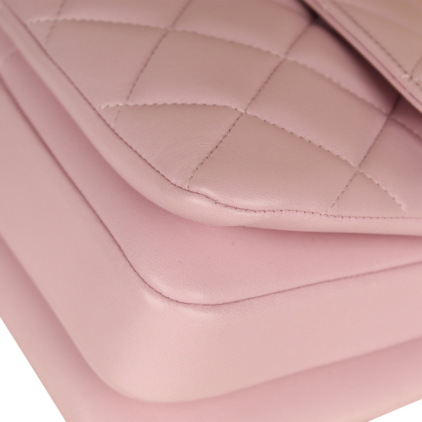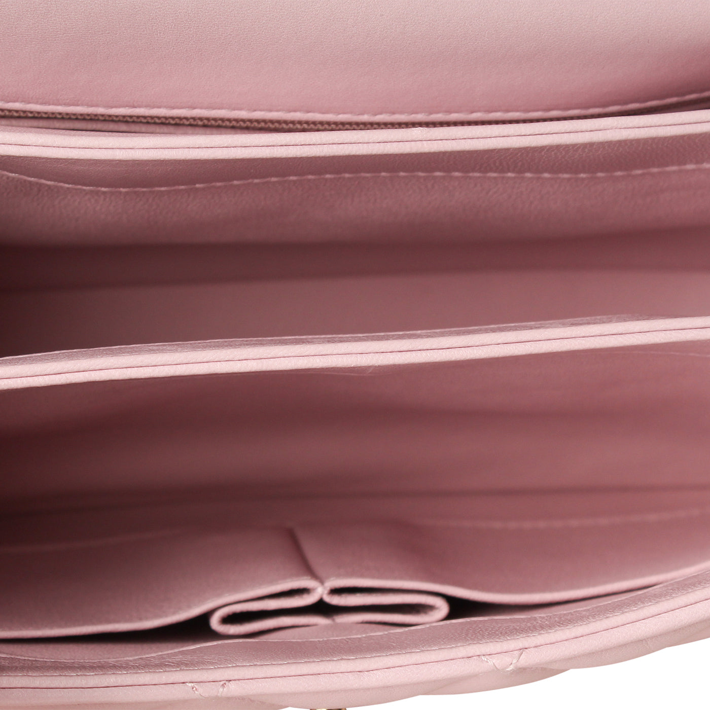 Oozing allure and sophistication, Chanel presents one of its most ravishing, highly acclaimed handbags, the Chanel Trendy CC Flap in Small. Crafted from light pink with lilac tones lambskin, the handbag features a sporty yet sharp silhouette. Its exterior is adorned in champagne gold hardware with a rather enlarged CC clasp and Chanel’s signature chain strap. Ideal for the lady who bears an adoration for Chanel handbags but wants to steer away from the classic collection without compromising on aesthetic, the Trendy CC flap can be worn both during the day and night.