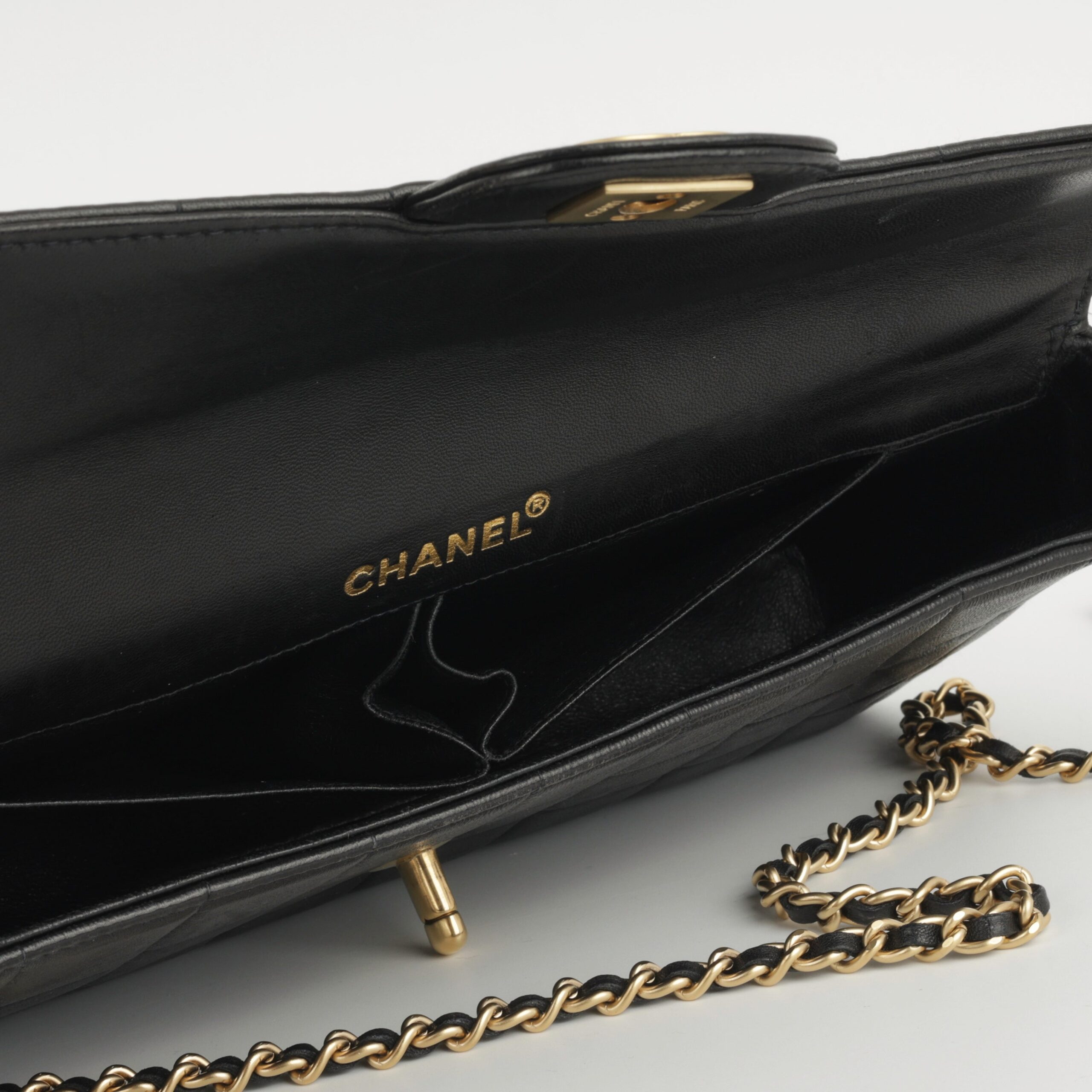 • Chanel embossed leather logo