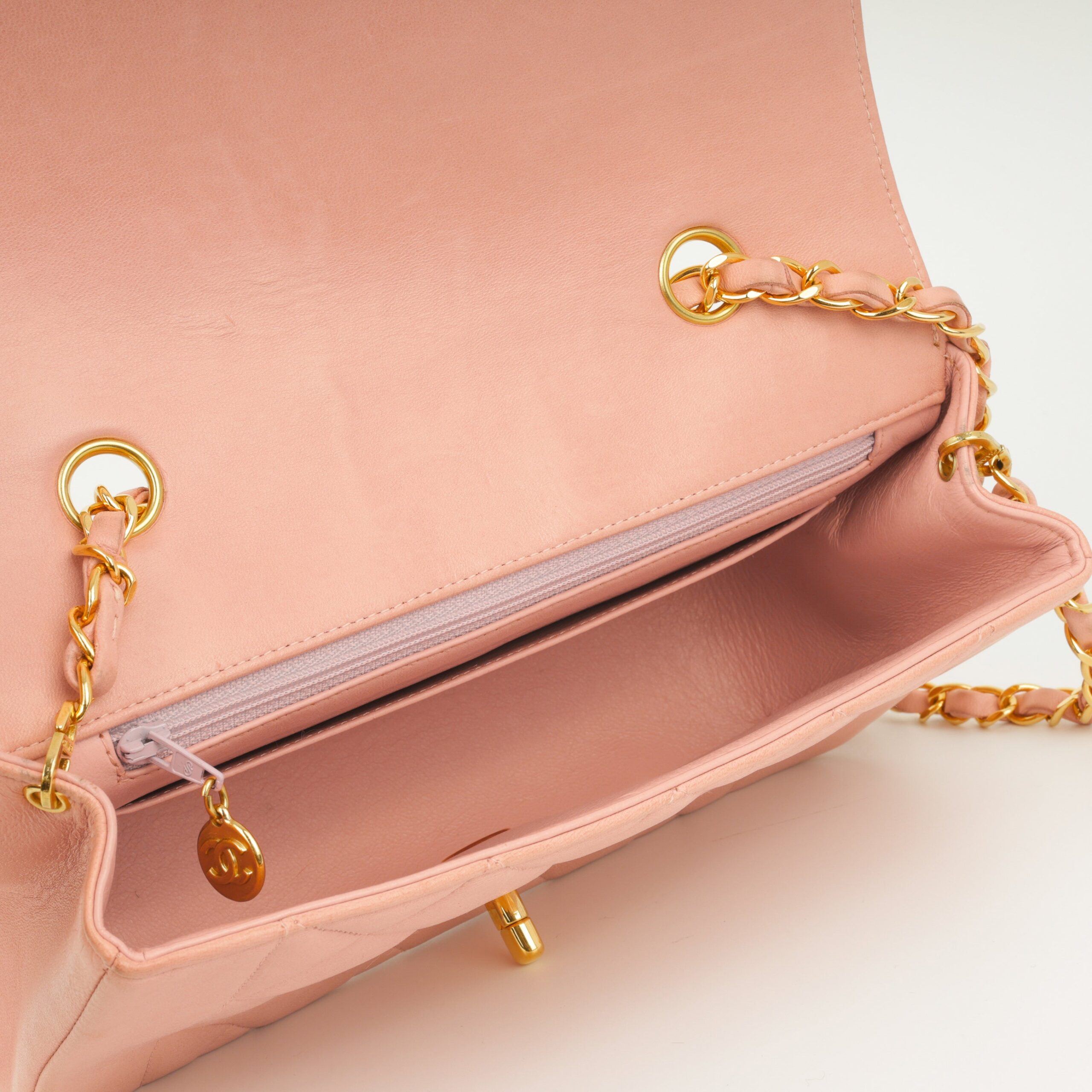 - Light Pink quilted lambskin leather
