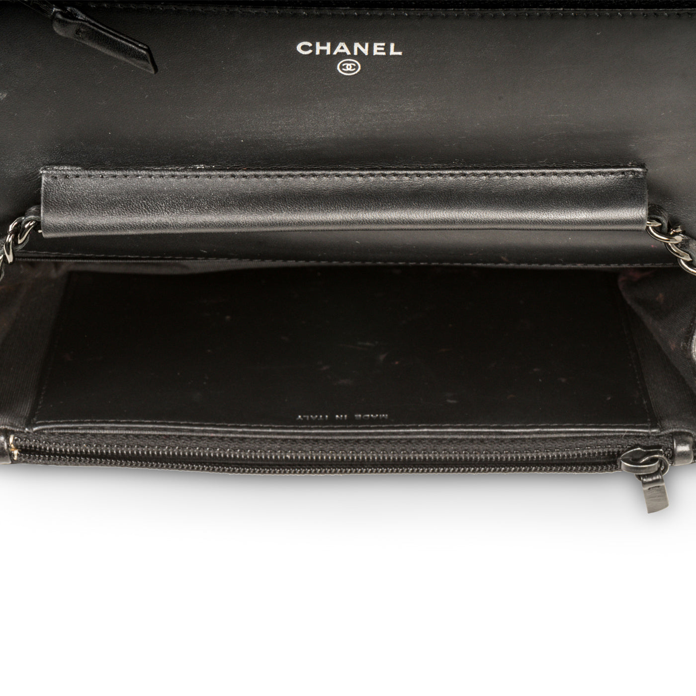 - Chanel embossed leather logo