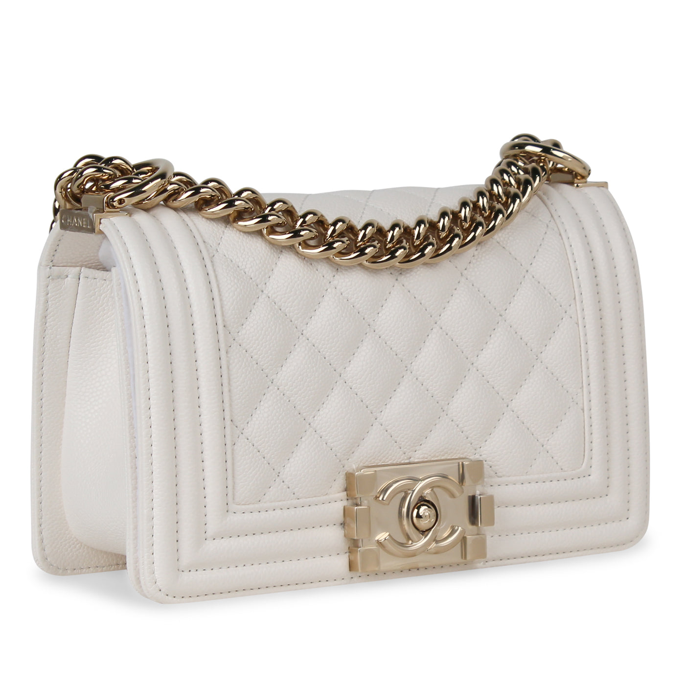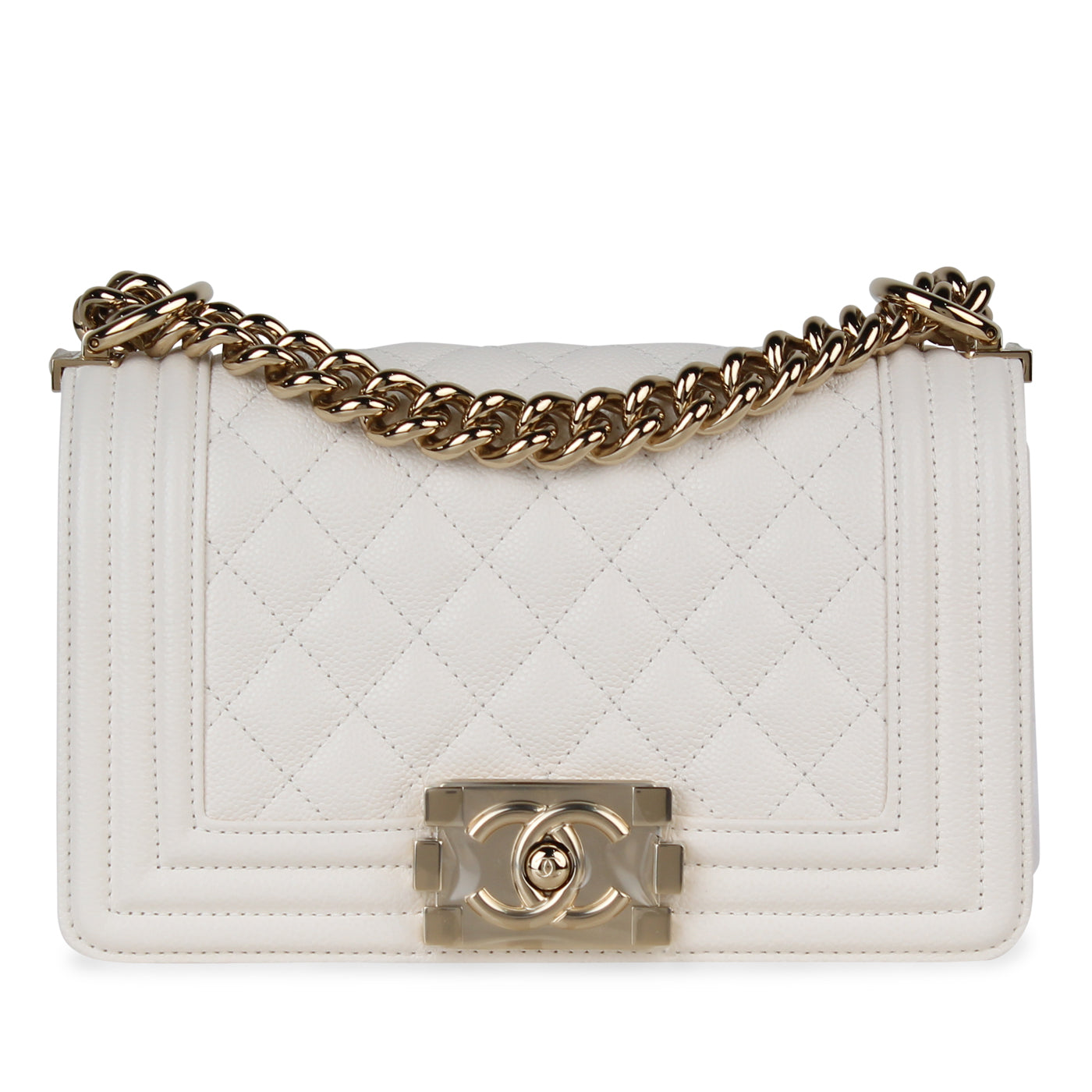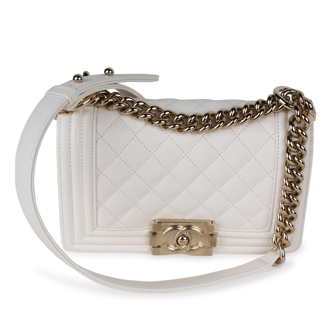 Under the creative direction of Karl Lagerfeld and for his Cruise 2015 collection, Chanel presented this truly magnificent Boy bag. A classic piece with an elegant twist, this gem is carefully crafted from White Caviar Leather. A statement piece that will remain in style and in your wardrobe forever, this Boy is an absolute must-have for any woman with a love for luxury. Dress this bag up for any formal event, or even dress it down with a more casual outfit if you really want to make a statement! Wherever you go or whatever you were it with, all eyes will definitely be on you. No luxury handbag collection is truly complete without a Chanel bag – and let’s be honest, not all women need a man, but they definitely need a Boy. 😉