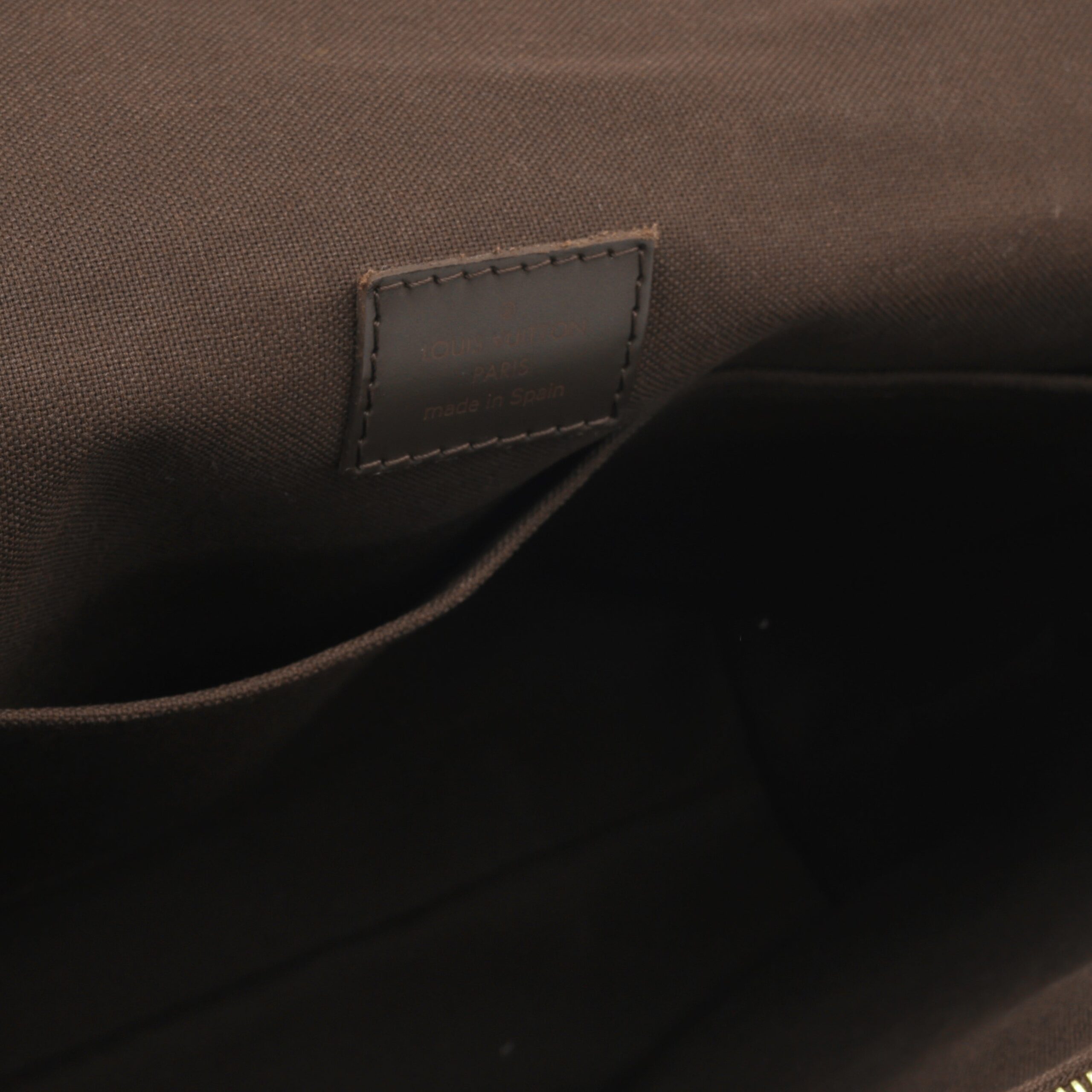 - Louis Vuitton leather logo at the front