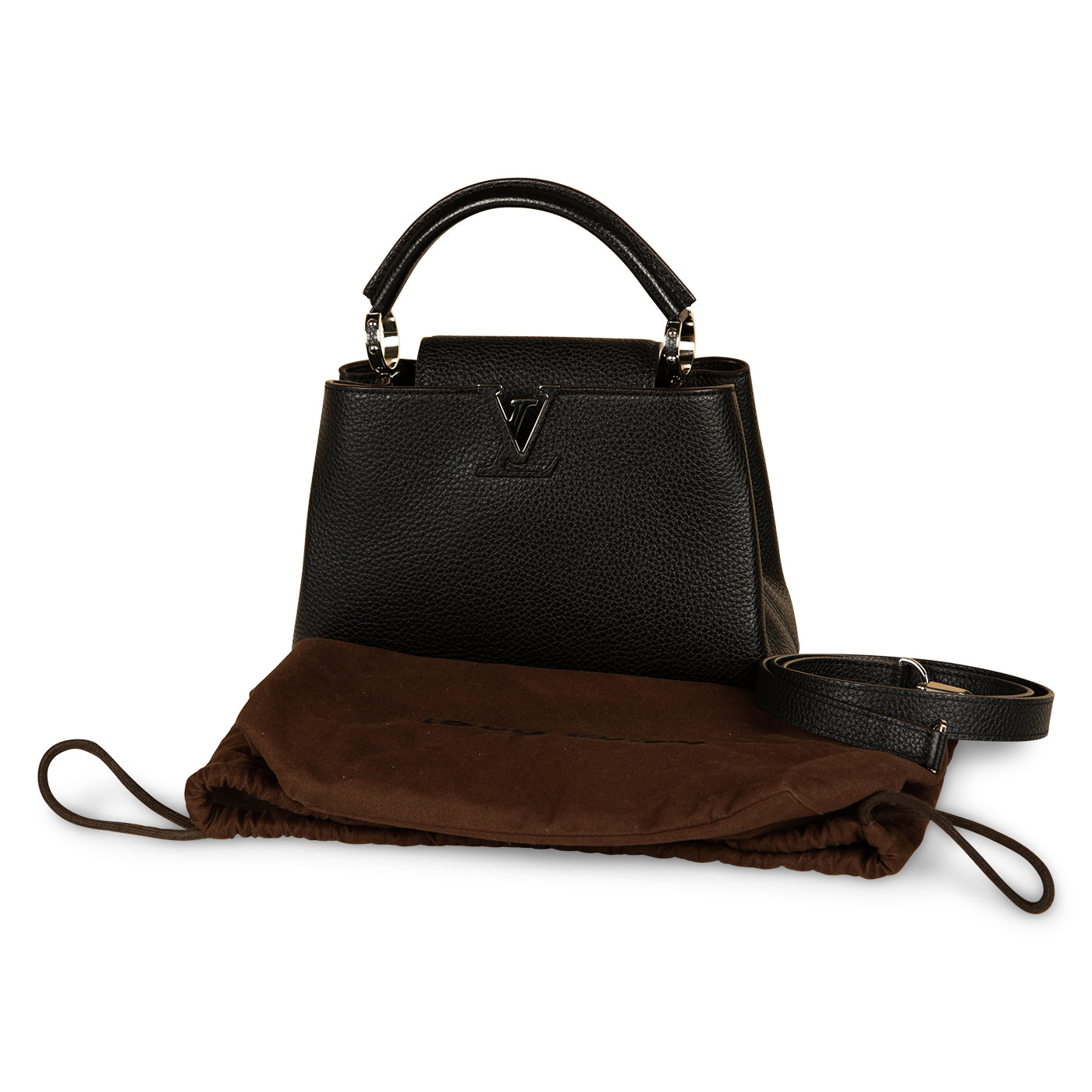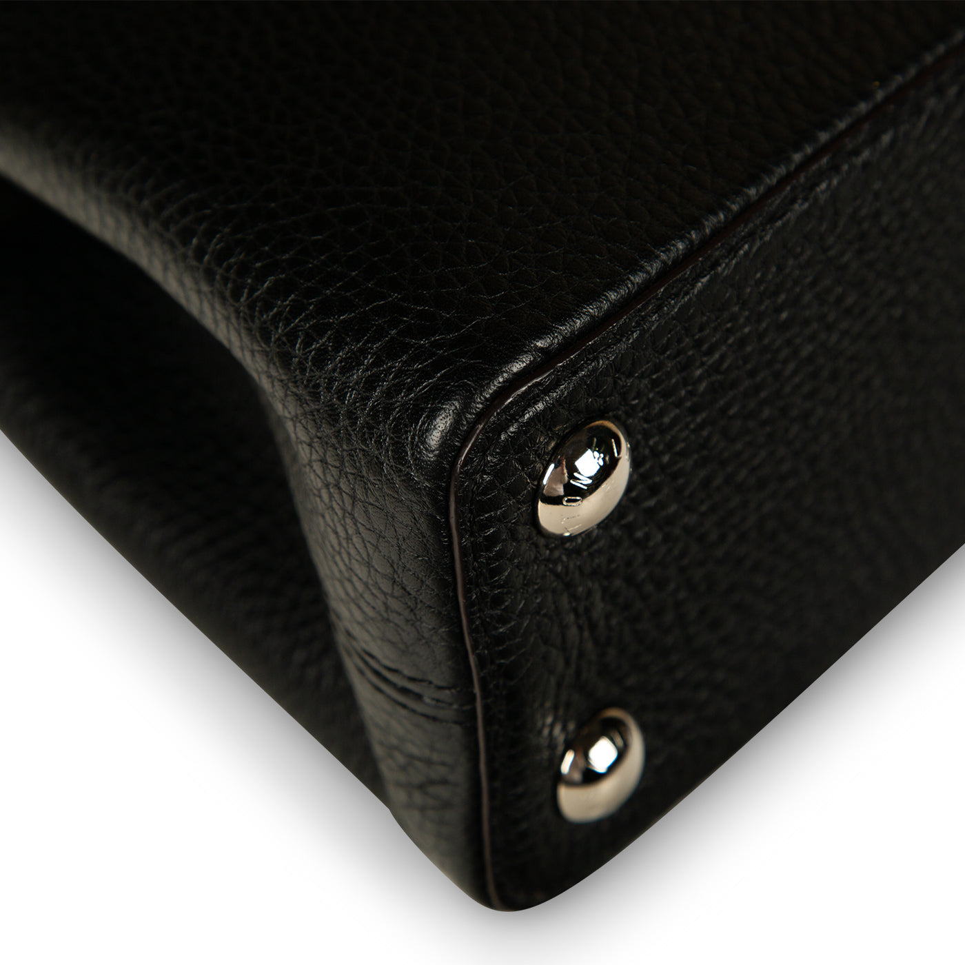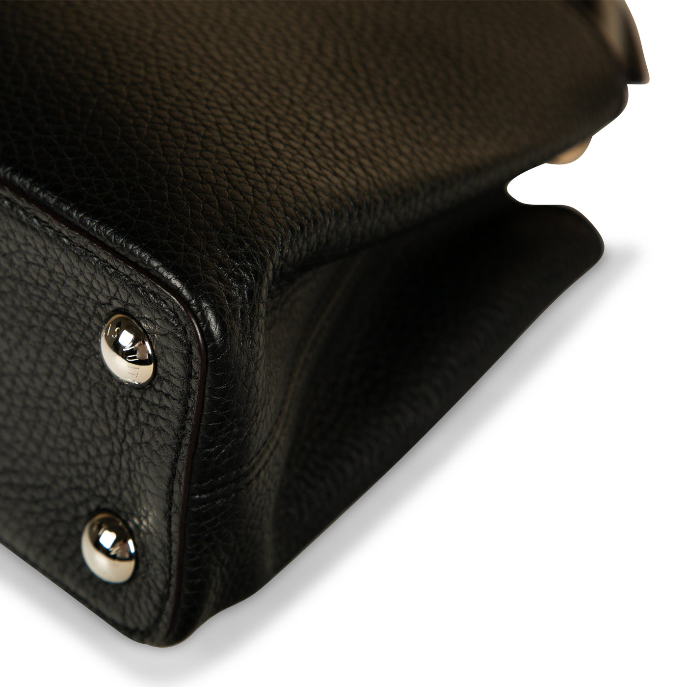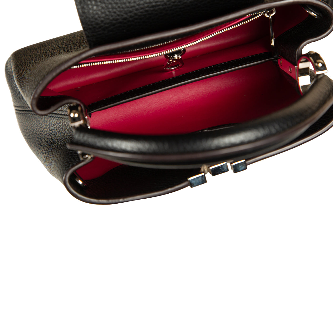The Capucines BB by Louis Vuitton is the perfect city chic bag. With modern lines and bold hardware, this will stand out from the crowd. The BB is compact and easy to wear as it adds a glamourous touch to any outfit. The Capucines line takes its name from the Rue des Capucines in Paris, where Louis Vuitton opened his first store in 1854. Wear the flap on the outside to show the monogram flower, or tuck the flap into the top compartment to reveal the LV initials in stunning gold hardware.