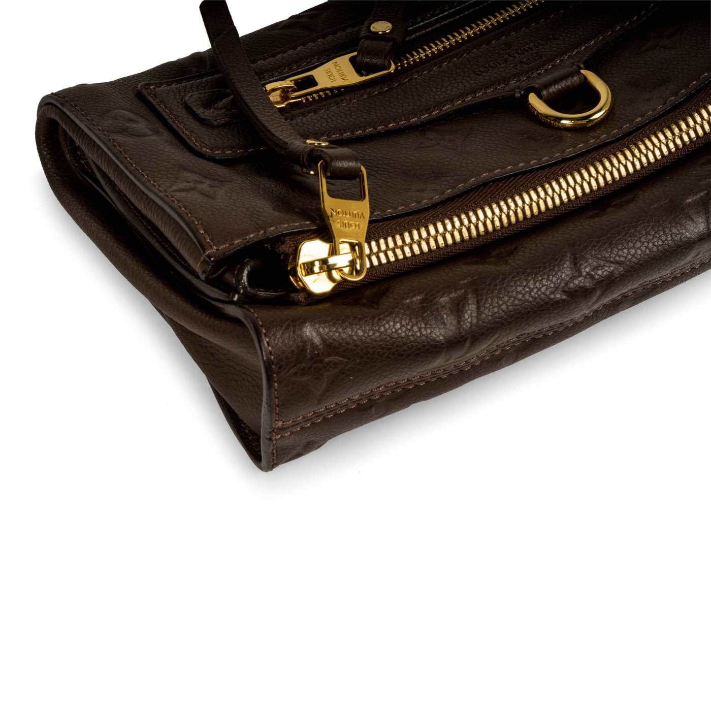 • Louis Vuitton embossed leather logo
