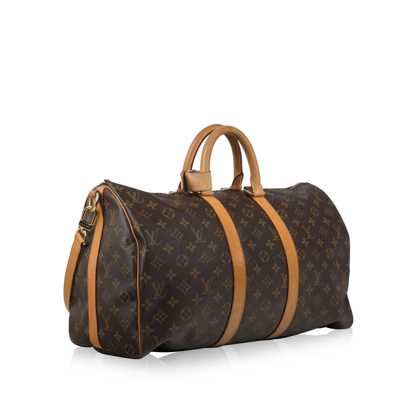 Louis Vuitton presents their signature Keepall bag, the perfect travel accessory for both men and women. Carefully crafted in the brand’s iconic Monogram canvas with tan leather trimming, top handles and shoulder strap, the Keepall is sleek and sophisticated. Spacious enough to carry your whole world inside, but small enough to easily accompany you throughout your day, the Keepall is also extremely lightweight. It’s the perfect travel companion and a necessary addition to any luxury bag collection, especially luggage. The perfect mix between fashion and function, it’s practical as well as stylish. Wherever you go, the LV Keepall will make sure you travel in style.
