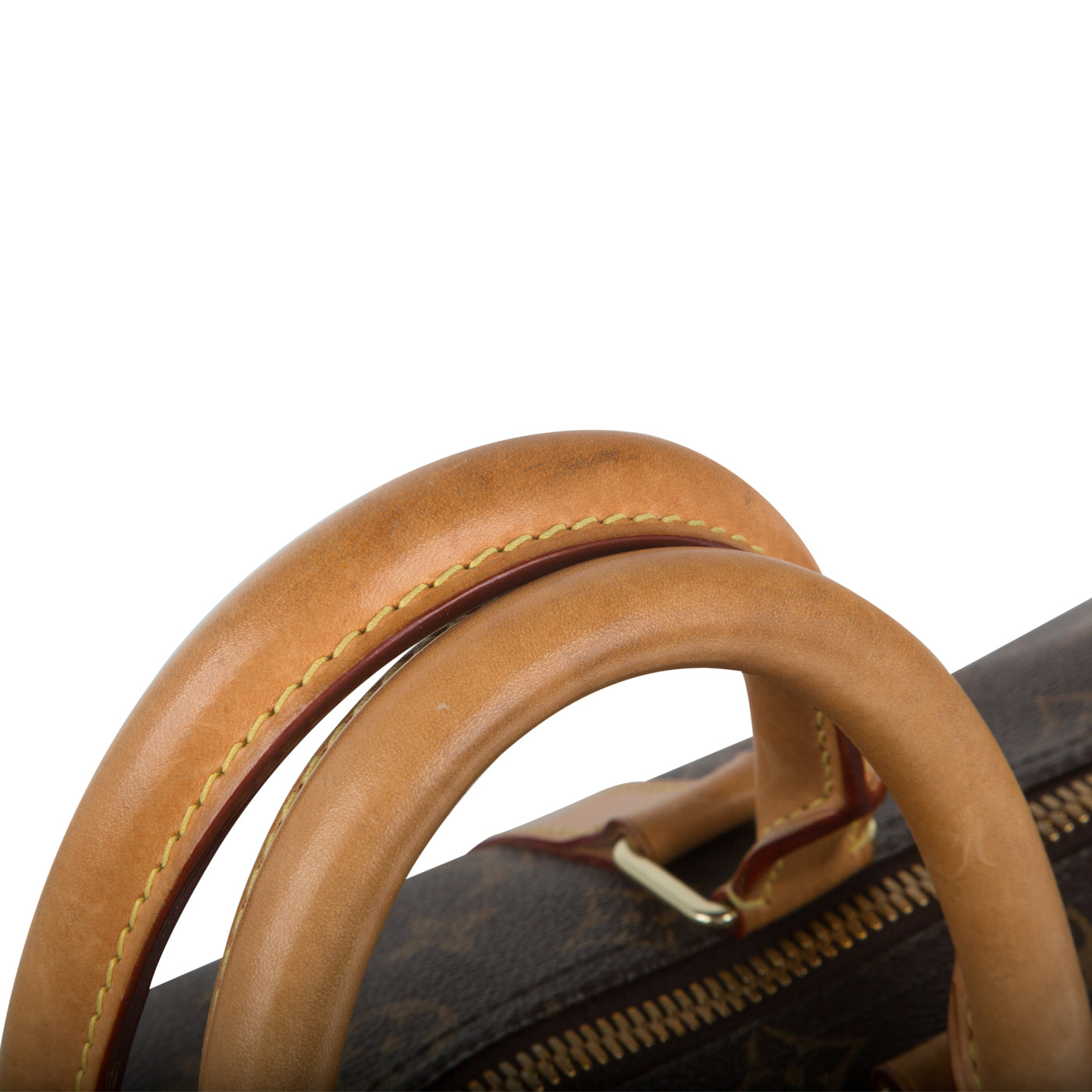 - Good condition – some watermarks and scratches to leather trimming, signs of use to handles and shoulder strap, minor wear to corners
