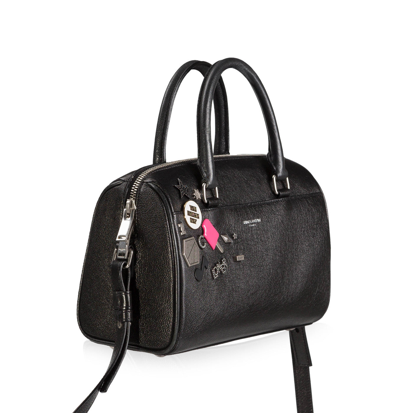 Simply does it with this Baby Duffle bag from Saint Laurent. This structured leather tote has rolled carry handles, a detachable and adjustable shoulder strap, and two-way zip closure.